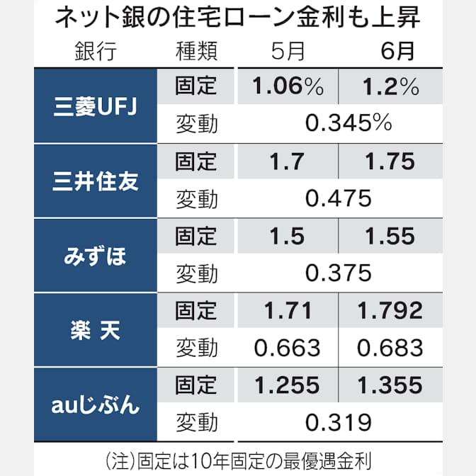 大手5行が固定金利を揃って引上げました。